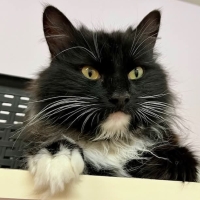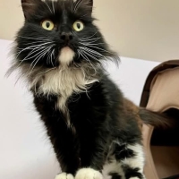 Yoko arbore un magnifique pelage tuxedo aux accents cuivrés sur ses cuisses, de belles grandes moustaches blanches et de superbes yeux très lumineux et expressifs. Cette beauté a été été chanceuse d’être sauvée par une gentille personne qui l’a confiée au refuge au tout début janvier 2025. Madame est en excellente santé quoique son pelage est en mauvais état. Elle aura besoin d’un bon toilettage pour se débarrasser des noeuds dans sa fourrure.