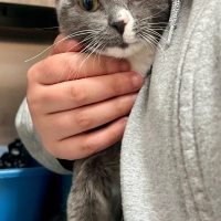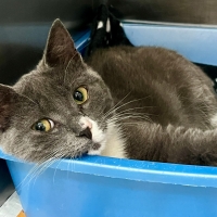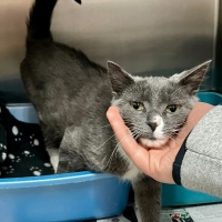 ZAZOU n’a pas encore été placé dans la salle commune où vivent une vingtaine de chats attendant leur adoption car il a eu des épisodes de diarrhée mais il est maintenant rétabli. Ainsi, le petit ange gris est peu vocal et patient dans sa cage. Quand on le laisse sortir, ZAZOU est très curieux et veut explorer autour de lui mais il demeure néanmoins très prudent et un peu craintif, ce qui est assez normal vu son passé. Dans sa nouvelle demeure, il appréciera avoir son propre arbre à chat installé près d’une grande fenêtre pour pouvoir observer à l’extérieur.