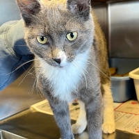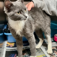 ZAZOU est un adorable chaton est en très bonne santé. Avec son joli pelage gris et blanc, son petit nez rigolo mi-noir, mi-rose et ses superbes yeux verts remplis de tendresse et de naiveté, il saura vous enchanter au premier coup d’oeil!
