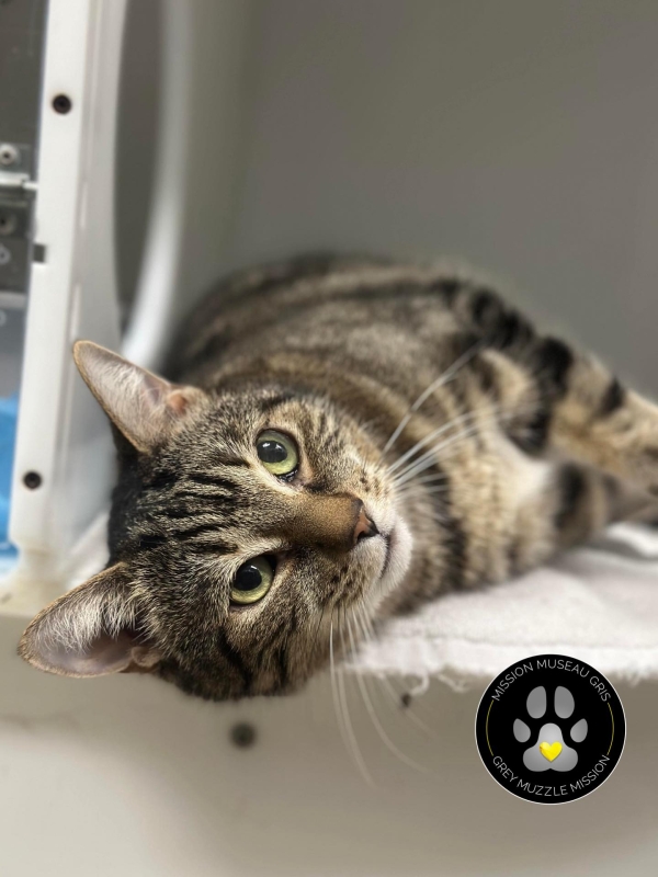 Zelda fait partie de notre programme Museau Gris, offrant une adoption à frais réduit pour les chats âgés.