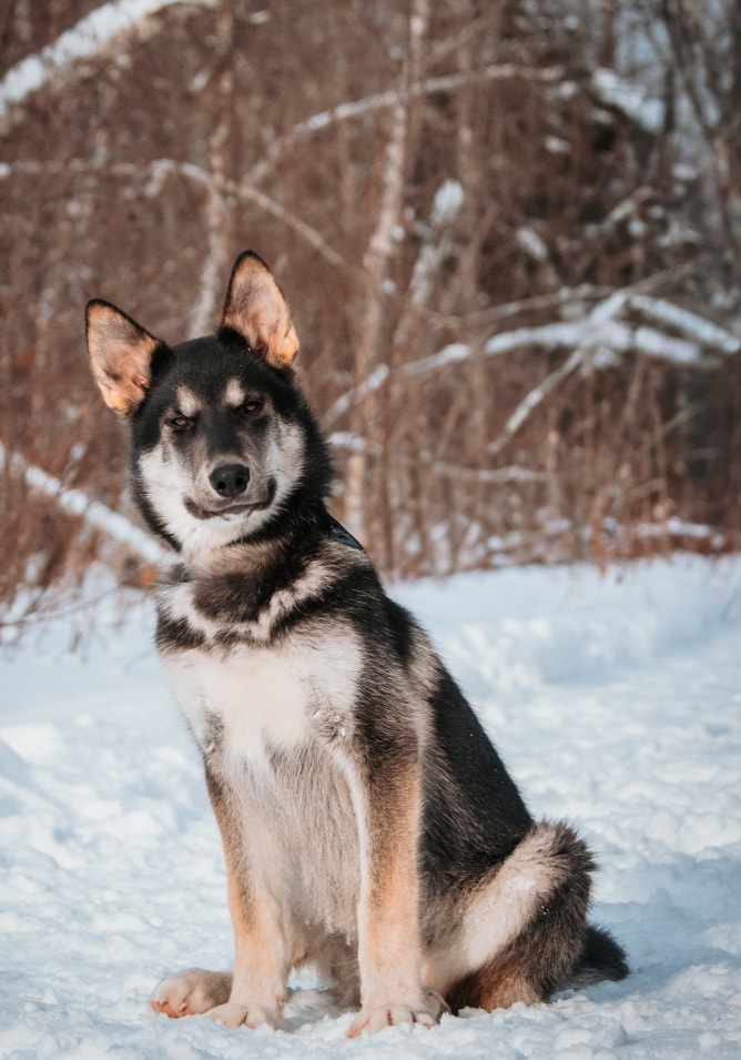 Aarluk est un mâle de race mixte âgé d’environ 5 mois et pesant 22 kg.