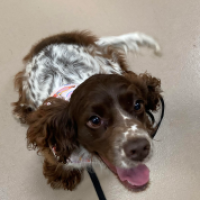 Une charmante jeune femelle de type Épagneul Cocker anglais croisé âgée de 2 ans et pesant 11.2 kg.