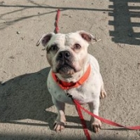 Un splendide mâle de type Bouledogue américain croisé âgé de 6 ans et pesant 29.60 kg.