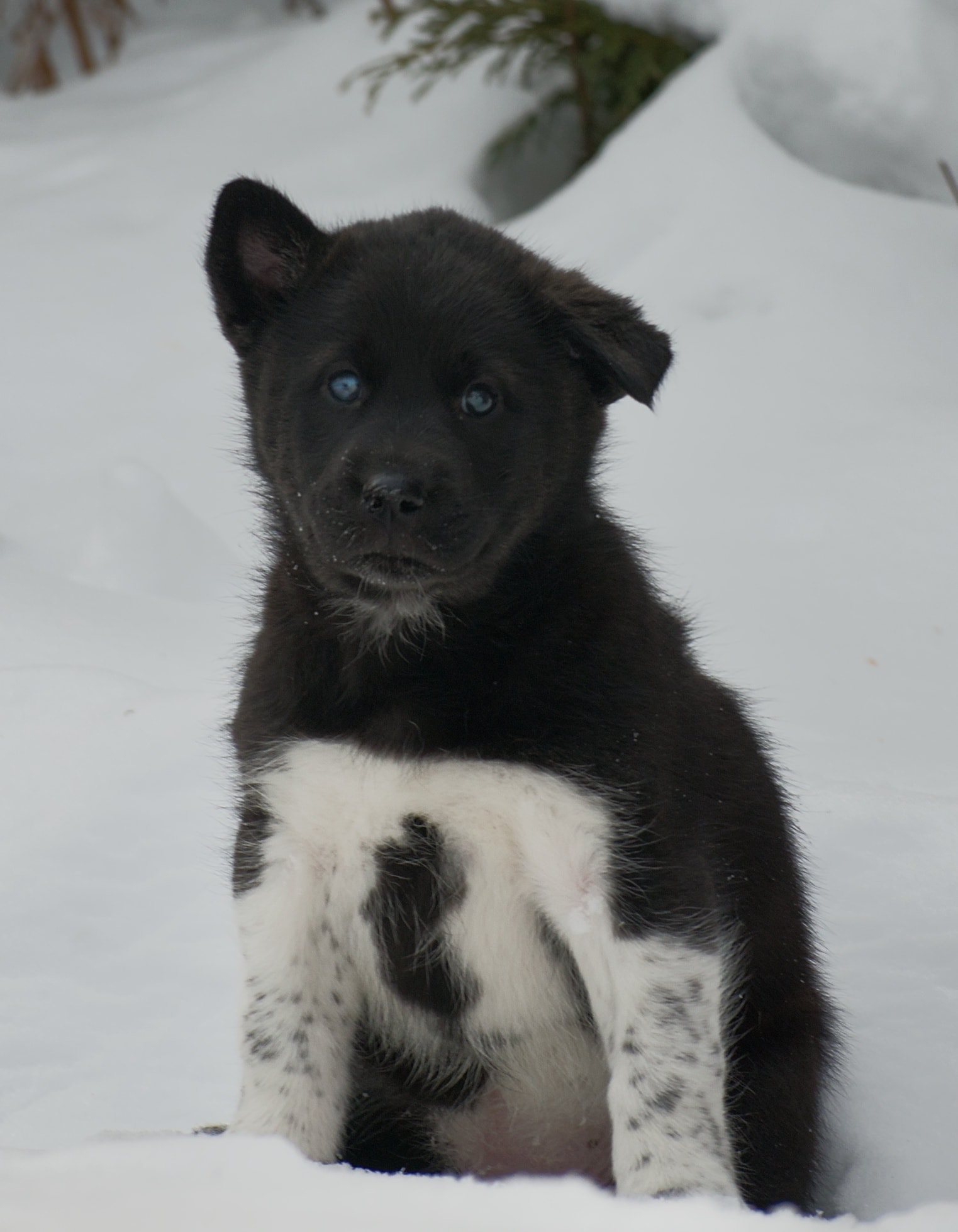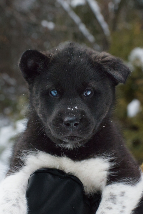 Aksa est une femelle de race mixte âgée d’approximativement 8 semaines et pesant 7,2 kg.