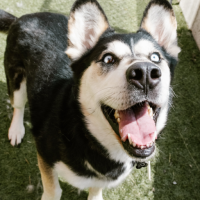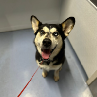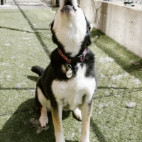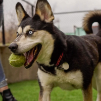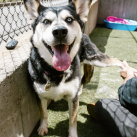 Une belle femelle de type Husky croisé âgée d’environ 4,5 ans.