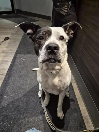 Alphie n’a pas eu une vie facile, et il est très probable qu’il ait passé au moins une partie de ses premières années à vivre dans la rue. Il a eu à un moment donné une maison mais a été abandonné par son propriétaire. Il a une boiterie de la patte arrière droite, probablement due à une ancienne blessure, peut-être qu’il a été frappé par une voiture, on ne le saura jamais ! Cependant, il s’en sort très bien, et les radiographies ont indiqué que ses hanches vont bien. En raison de son âge et de sa boiterie, nous lui donnons quotidiennement une supplément articulaire.