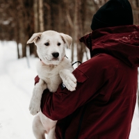 Elle aime beaucoup aller jouer dehors et creuser des trous dans la neige. Elle aime bien trouver les « failles » de la clôture pour aller explorer plus loin! Elle a débuté les balades en laisse, il y a tellement de trucs à sentir!