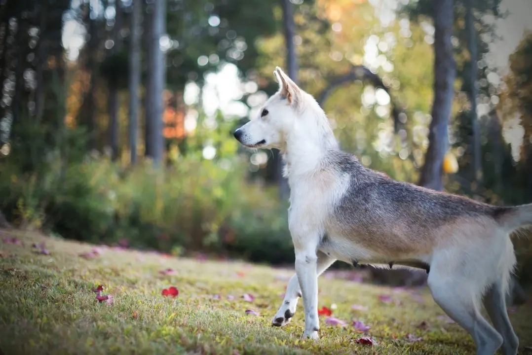 Lorsque vient le temps des promenades, moi Anushkan, je marche quand même bien en laisse, sans trop tirer, grâce à un harnais bien ajusté et un collier de type martingale. Je regarde tout autour de moi plutôt que de garder le nez au sol. Lorsque je vois des écureuils, des oiseaux ou tout autre mouvement au travers du feuillage, je fixe et refuse d’avancer. Il est alors plutôt difficile de briser ma fixation et de continuer notre marche. C’est un petit côté de moi qui sera à travailler avec ma famille adoptive. Mes humains actuels pensent que j’ai un bon potentiel pour les sports attelés, à condition de réussir à me garder concentrée. Nous, Uniussin et Anu Nuumu, sommes très curieux et explorateurs lors des promenades. La marche en laisse est encore à travailler. Possiblement que de marcher avec un autre chien pourrait nous aider.