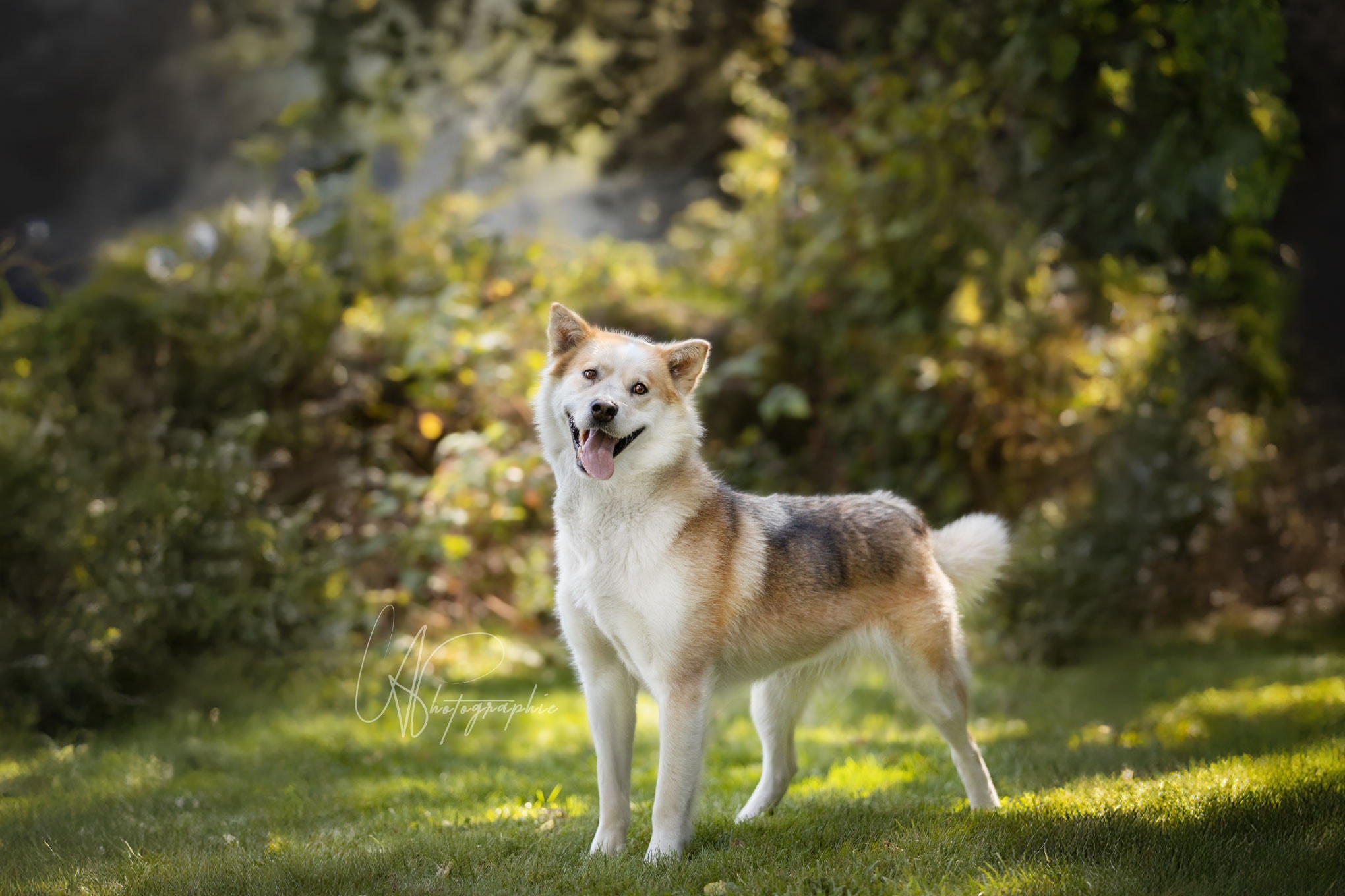 J’ai présentement accès à une cour clôturée où je me plais bien. Ce que j’aime plus que tout? Les PROMENADES! Partir à l’aventure olfactive et explorer le monde avec mon nez, c’est vraiment le paradis pour moi. Je marche de mieux en mieux! Je pense que je pourrais être une bonne candidate pour les sports de traction.