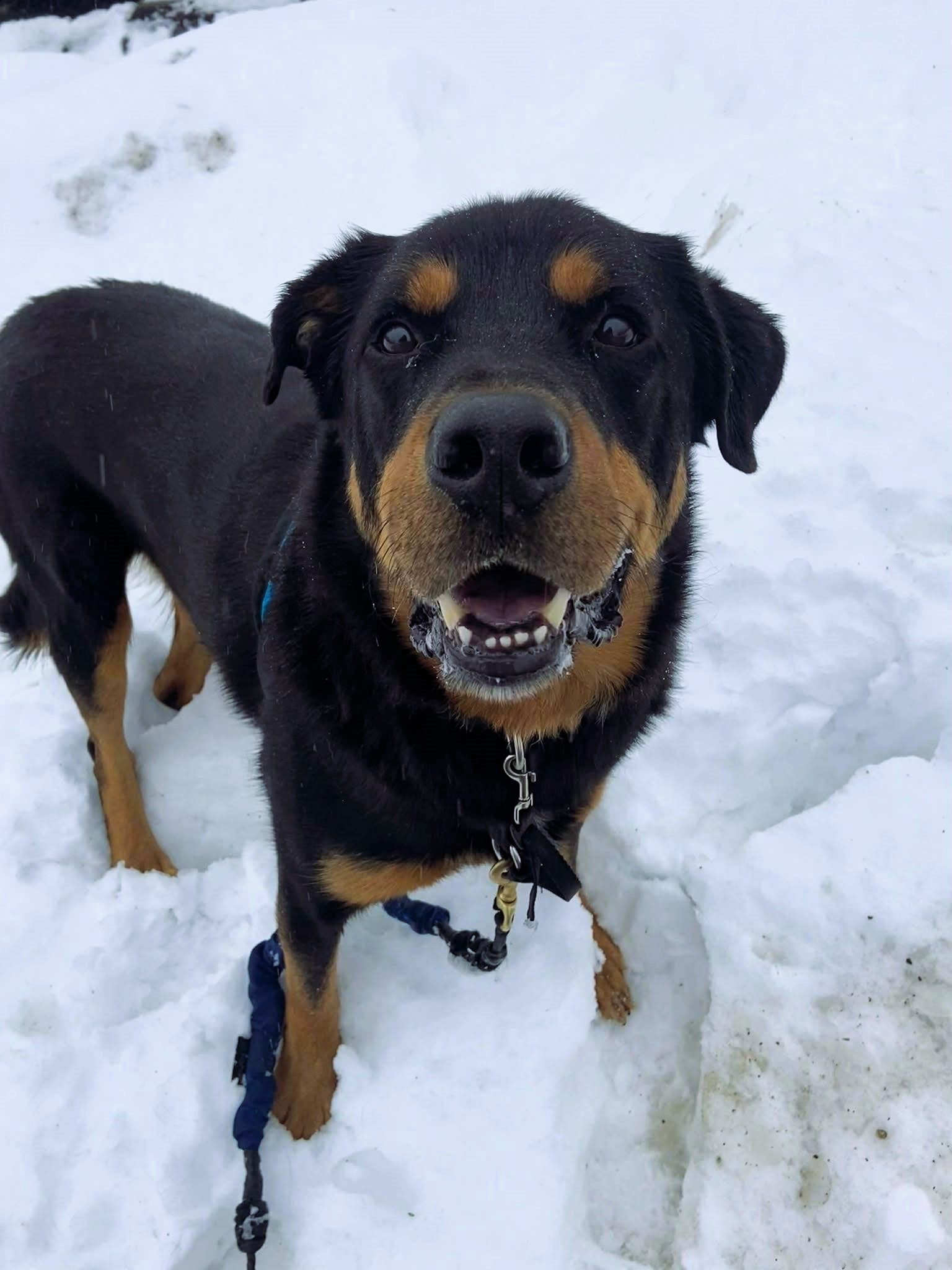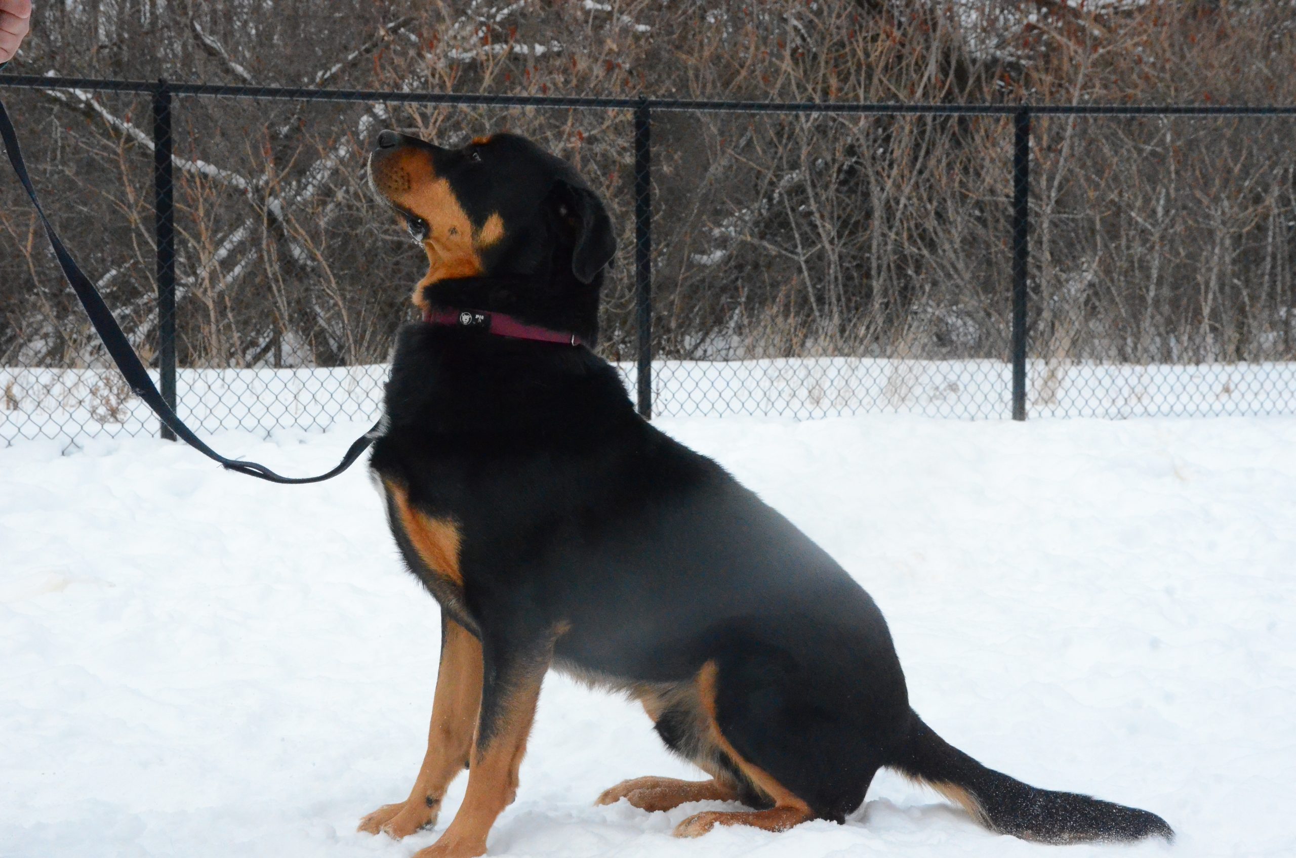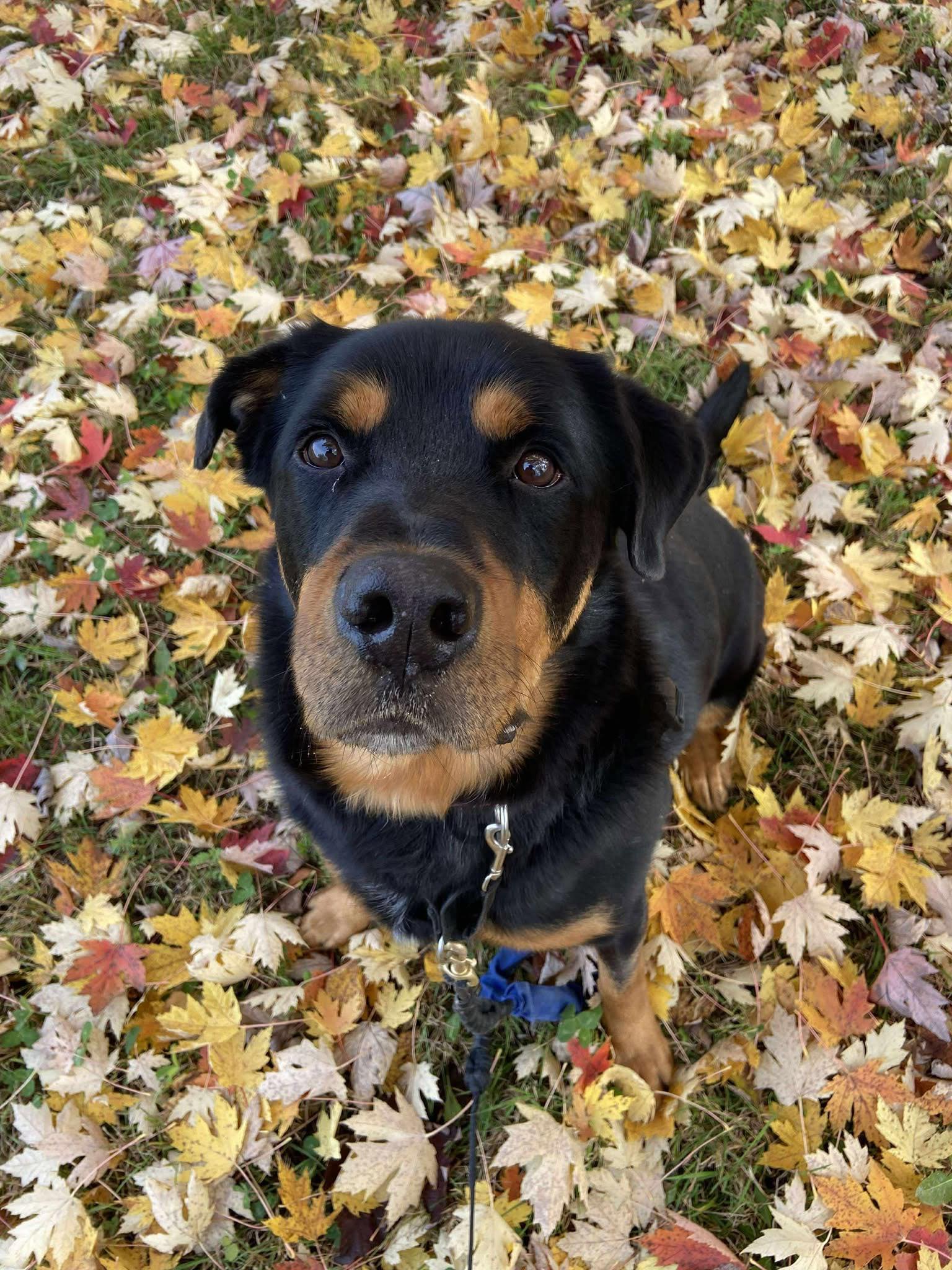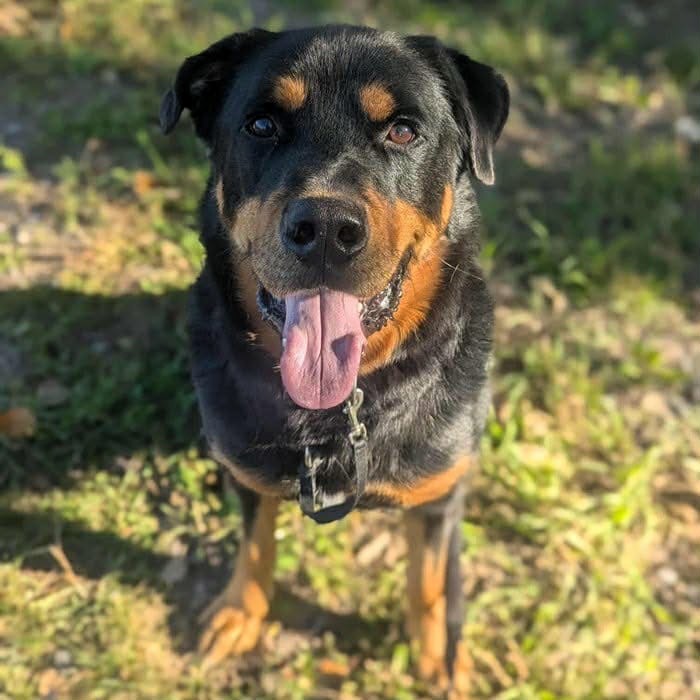 Un joli mâle de type Rottweiler croisé âgé de 7 ans et qui pèse 28kg.