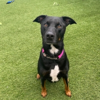 Un joli mâle de type Rottweiler croisé de 6 ans et pesant 93 livres.