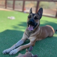 Une magnifique femelle de grande taille âgée de 2 ans et de race berger croisé. Elle présente un niveau d’énergie moyen à élevé.