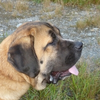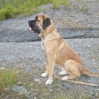 Une belle grande femelle de race Mastiff croisé de 1 an. Elle pèse environ 125 livres et est exceptionnellement...