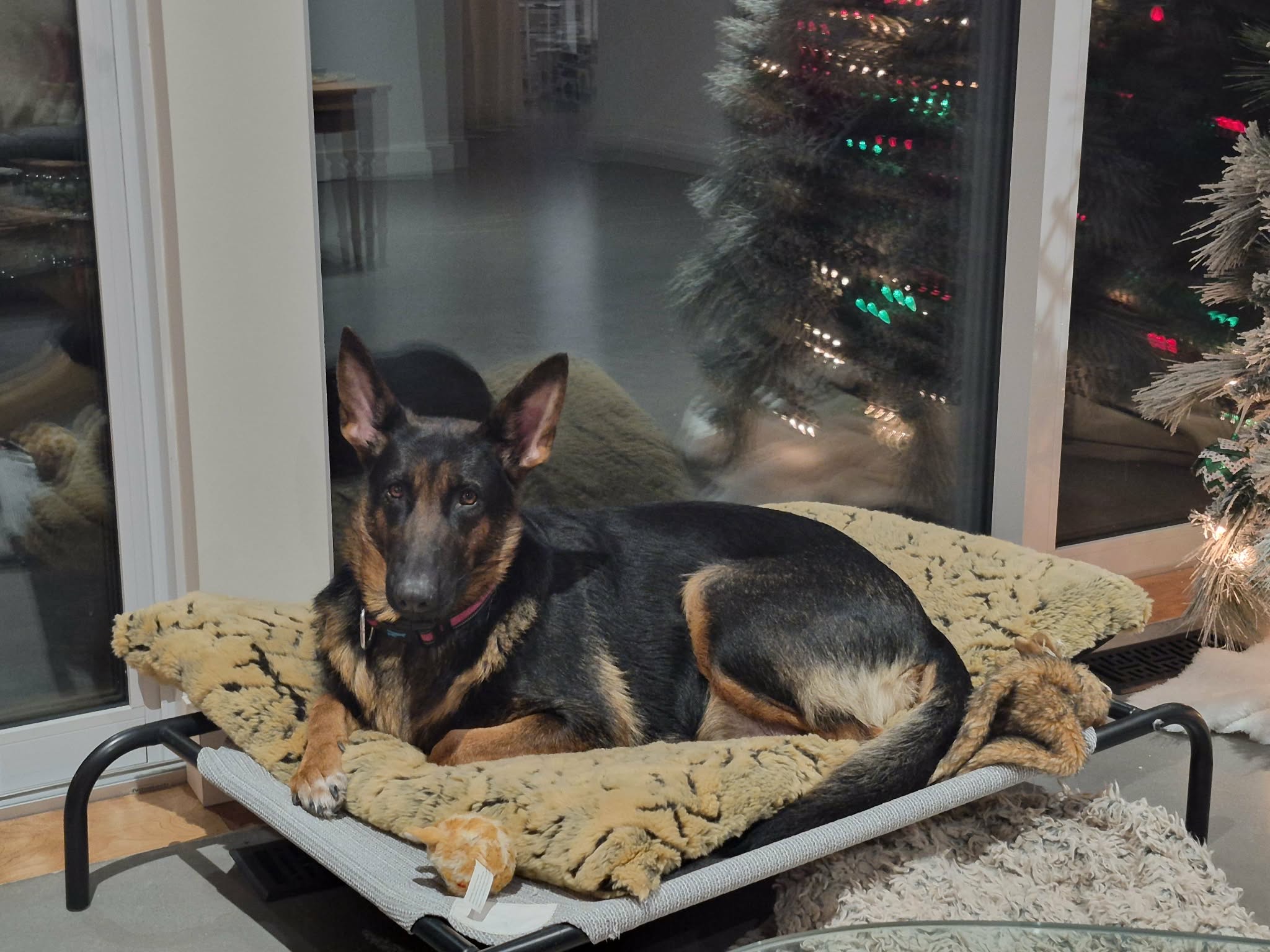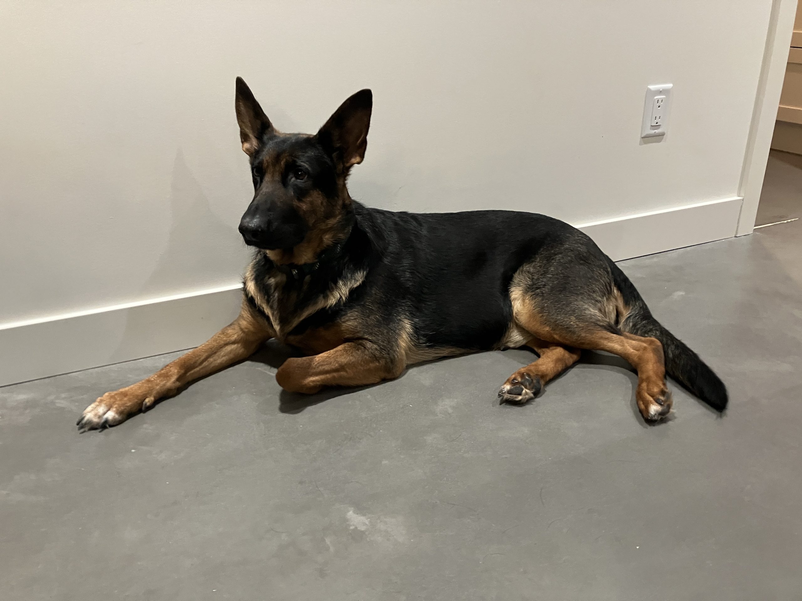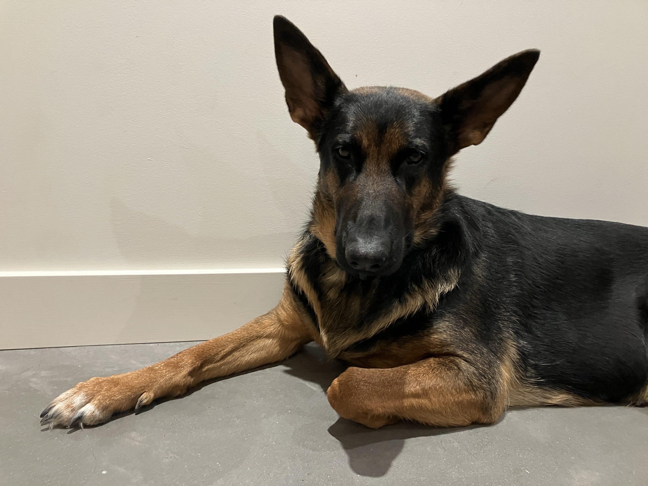 Une jolie femelle de type Berger Allemand croisé âgée de 4 ans et qui pèse 32.5kg.