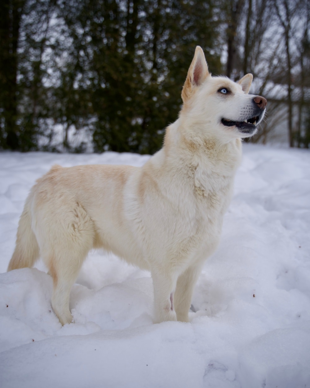Ma vie à l’extérieur : J’ai un grand besoin de bouger et j’adore ça ! La marche en laisse devra être travaillée, car j’ai tendance à beaucoup tirer, surtout si je croise des chiens et des humains. Je suis excité en voiture, mais je finis par me calmer après quelques minutes. Je devrai être attaché en tout temps à l’extérieur.