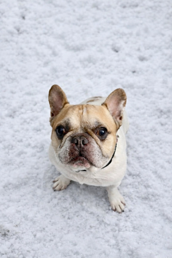 un bouledogue français croisé de 10 ans, un vrai petit monsieur qui porte son âge avec douceur et dignité.