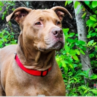Une superbe femelle de race Bouledogue américain croisée Labrador de 3 ans, disponible à l’adoption.