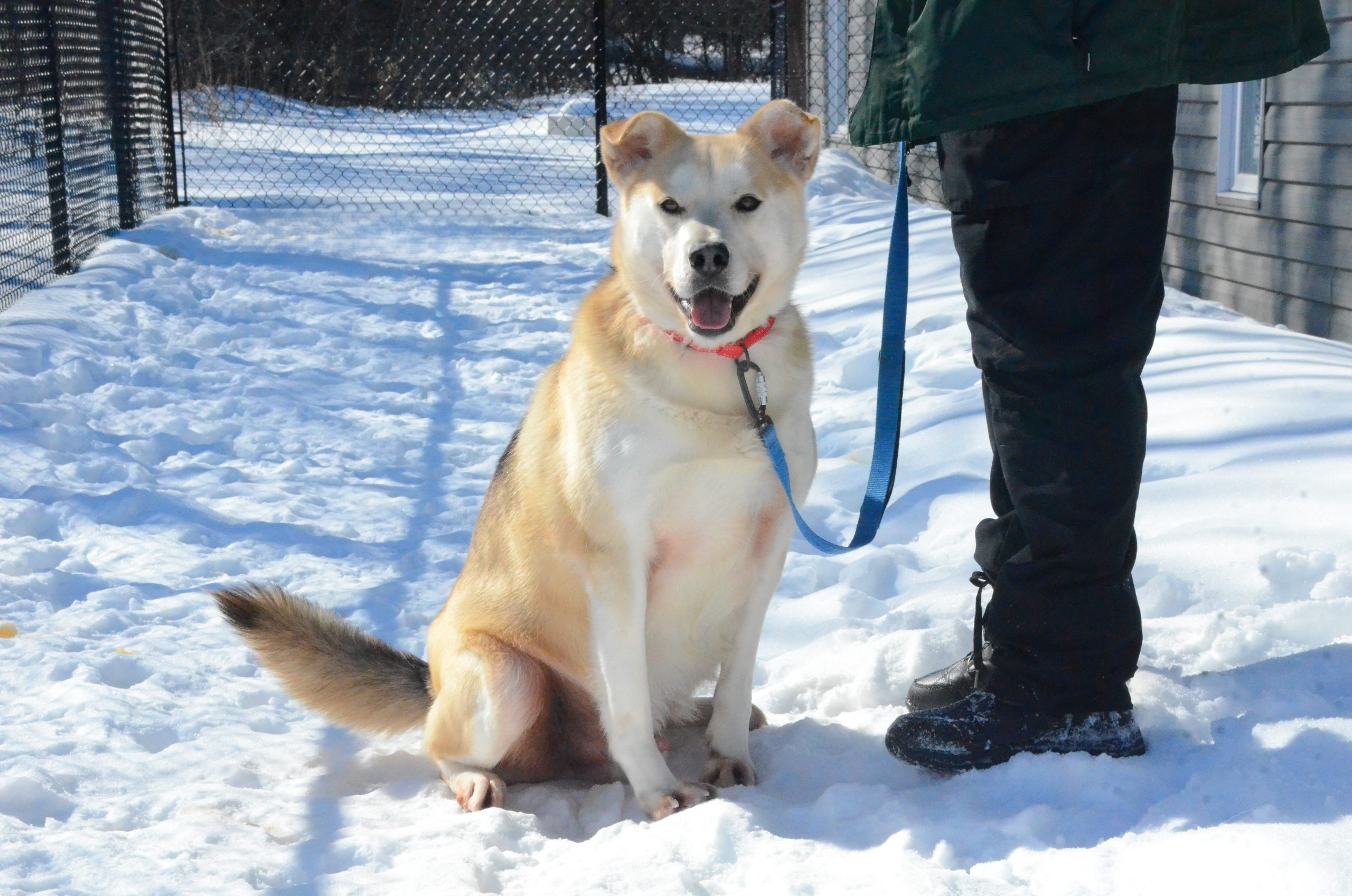 Un joli mâle de type Husky croisé âgé de 5 ans et qui pèse 39kg.