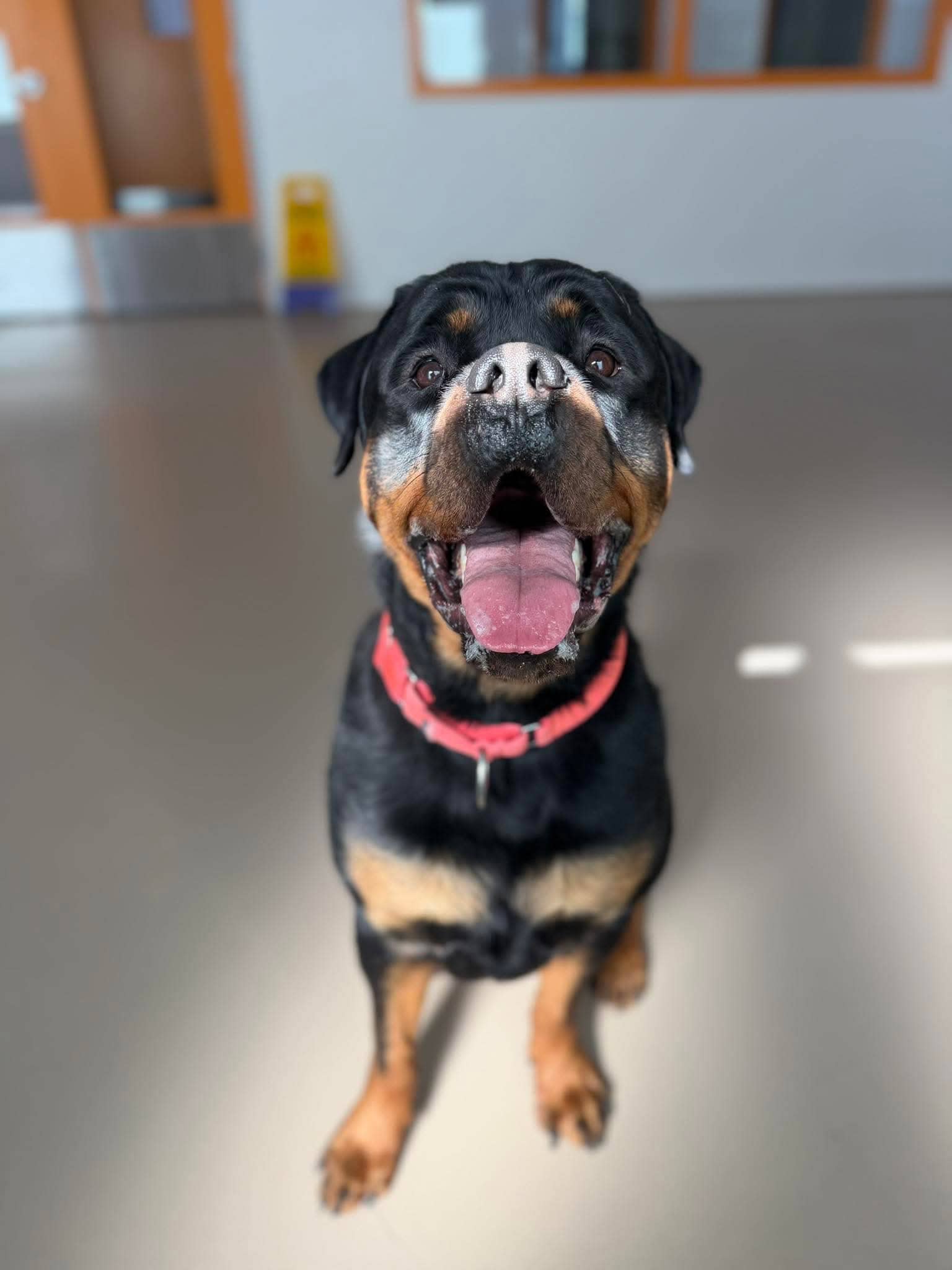 Un ravissant mâle de type Rottweiler âgé de 2 ans, au tempérament amical et enjoué.