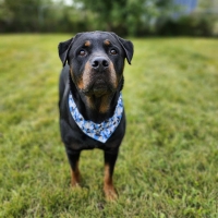Un adorable mâle de type croisé âgé de 4 ans et 3 mois et pesant 89,5 livres.