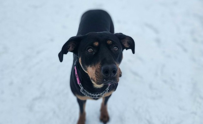 Un adorable mâle de type croisé âgé de 3 ans et 9 mois et pesant 55 livres.