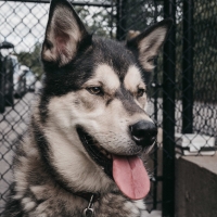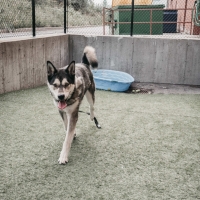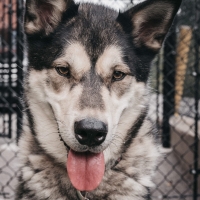 Un énergique mâle de type Husky croisé Malamute âgé de 6 ans à la recherche d’une famille active qui aime le plein air et qui lui permettra de dépenser son énergie.