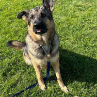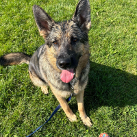 Une magnifique femelle âgée de 4 ans, de grande taille et de race croisée. Elle pèse environ 87 lbs et présente un niveau d’énergie élevé.