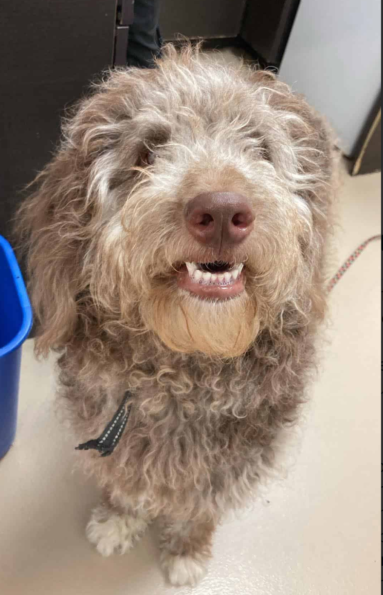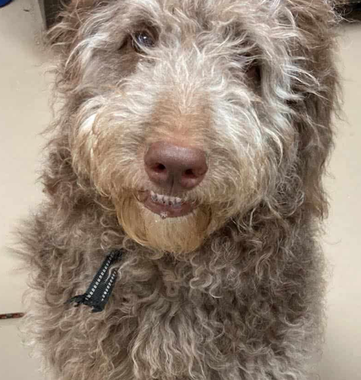 Un beau mâle de race croisée Caniche et Berger australien âgé de 7 mois.