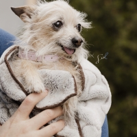Elle nous a été confiée car malheureusement ses anciens propriétaires âgés n’étaient plus en mesure de s’en occuper. Nous avons mis à jour ses vaccins, elle a également été stérilisée et est maintenant prête à trouver la famille qui lui offrira une belle retraite.