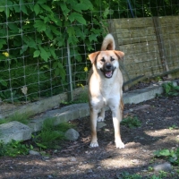 Elle est super gentille et se lie bien à sa famille après une petite période d’adaptation. Elle sera plus heureuse et plus facile à apprivoiser avec d’autres chiens à la maison. Elle suit les autres chiens et aime les imiter. Elle vit présentement dans une famille d’accueil à Stanstead depuis plusieurs semaines et elle se laisse caresser. Lorsqu’on s’assoit avec elle dans son enclos, elle attend bien sagement qu’on dépose sa nourriture. Elle est propre dans son enclos. Elle se laisse faire pour mettre son harnais, mais déteste se sentir coincée ou se sentir tirée par le cou, la marche en laisse sera à travailler, donc une cour clôturée serait très pratique particulièrement pour les débuts.