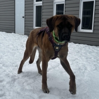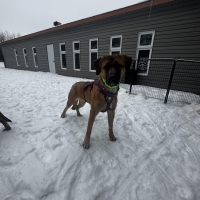 Une adorable femelle de race croisé âgée de 1 an et qui pèse 25 kg.