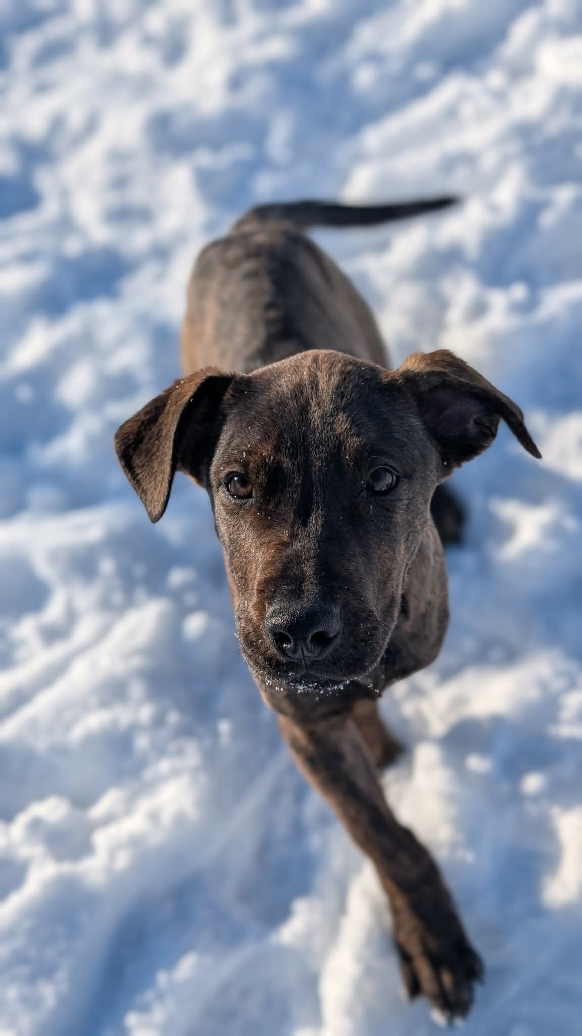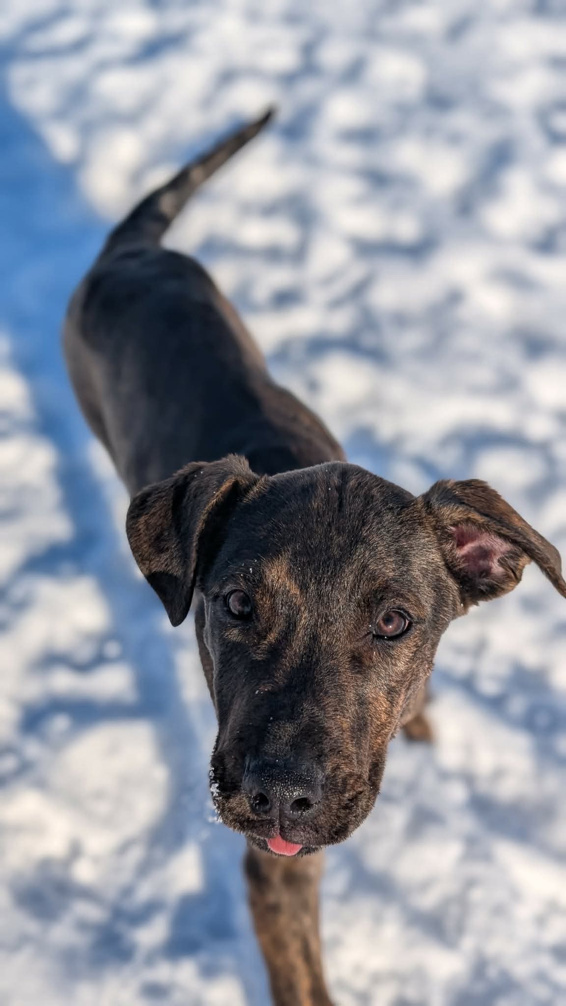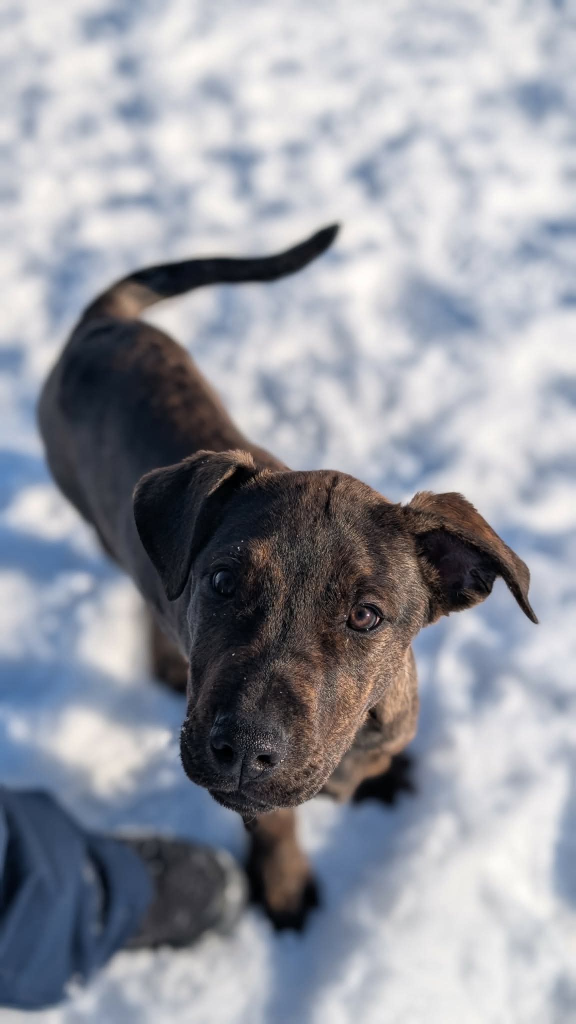 Voici Einstein! Un beau mâle de type Berger malinois croisé Boxer âgée de bientôt 3 mois. Einstein est compatible avec les chats...
