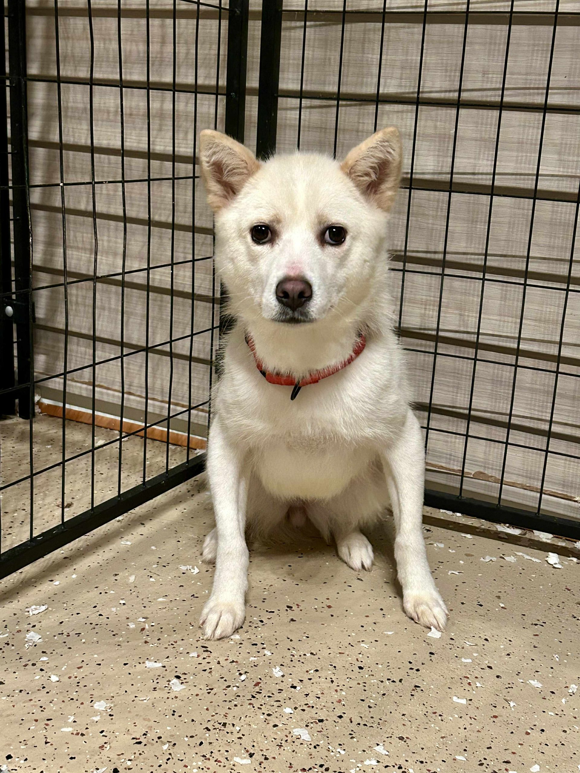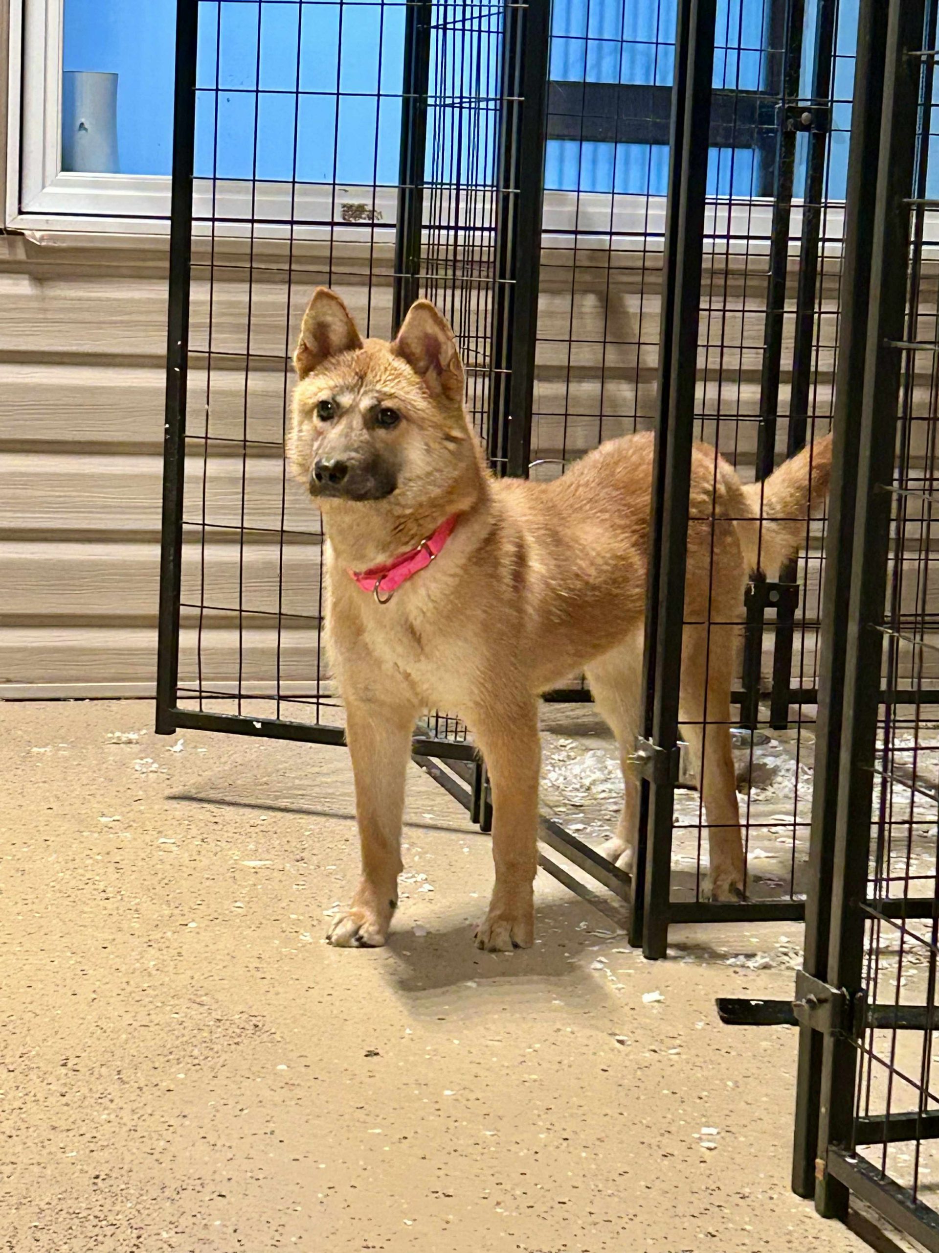 Une superbe femelle de type Jindo croisé âgée de 3 ans et pesant 18 kg.