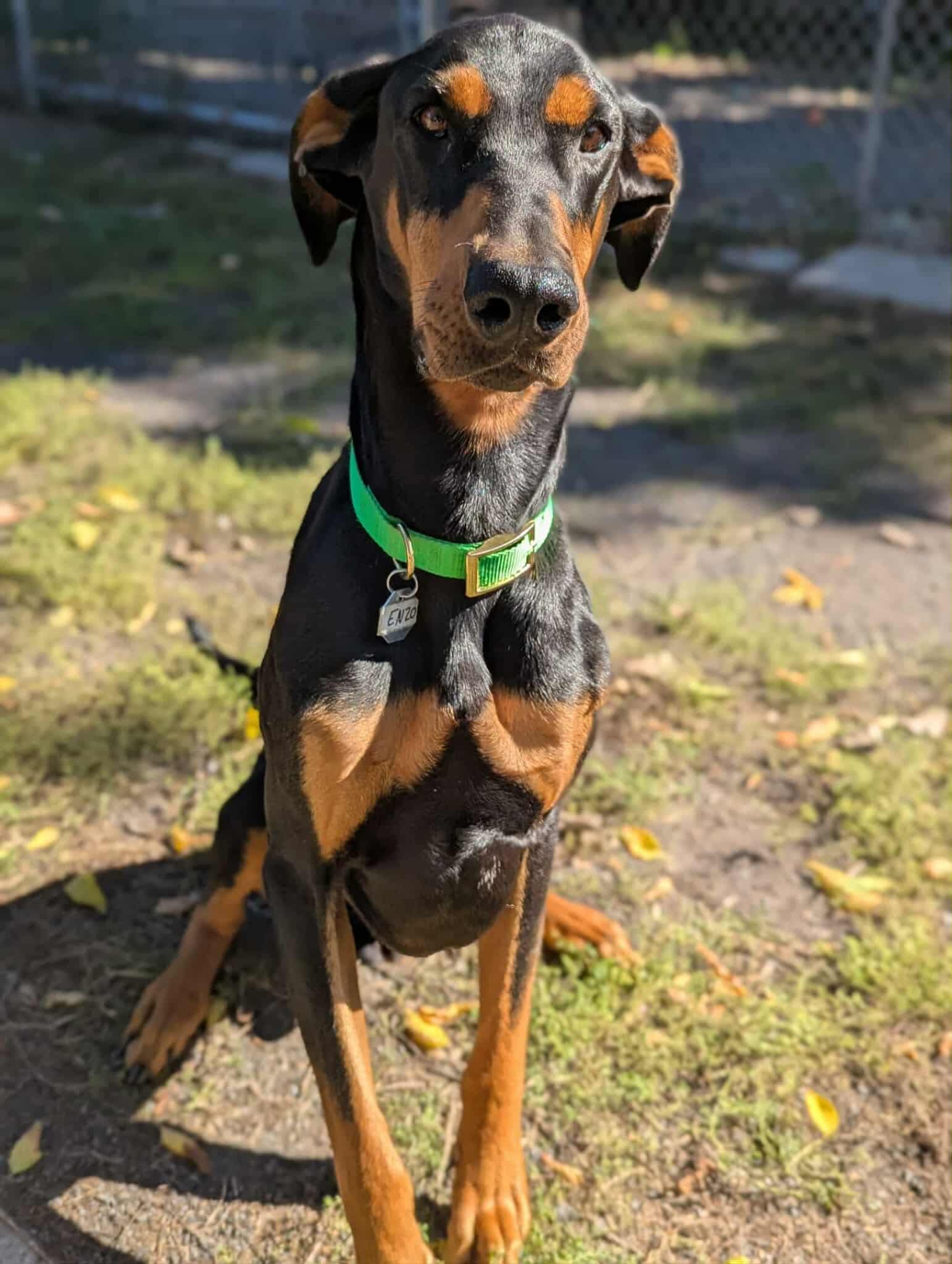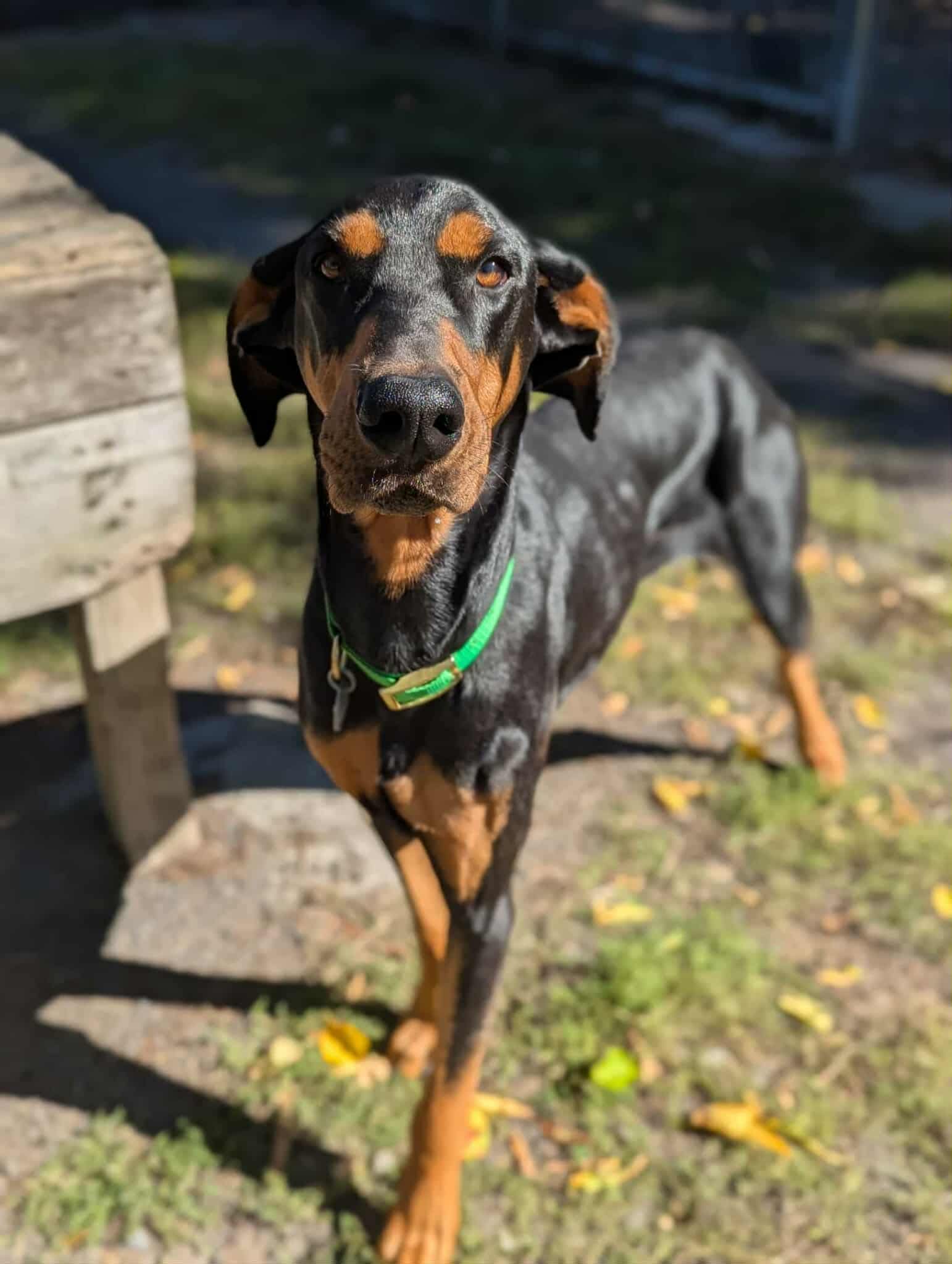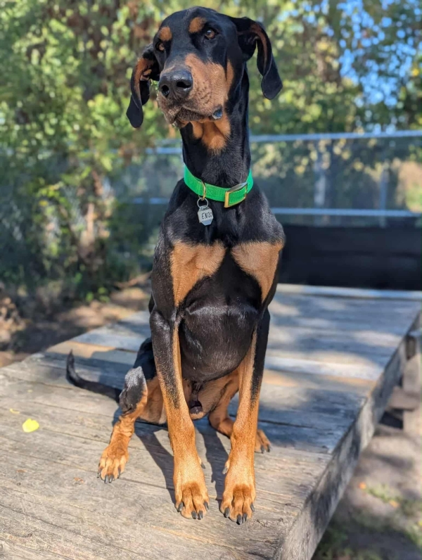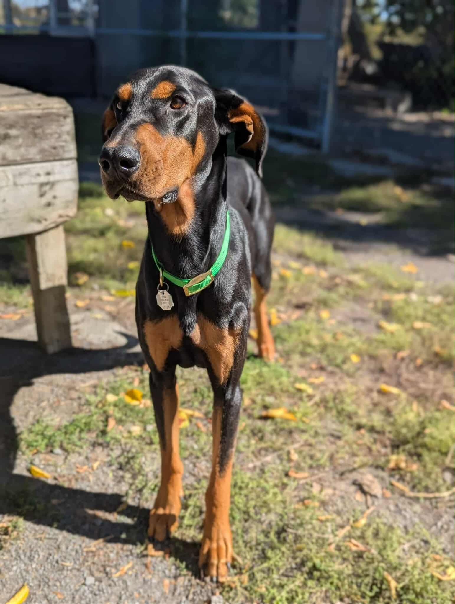 Un ravissant mâle de type Doberman âgé de 5 ans et pesant 75 lbs.