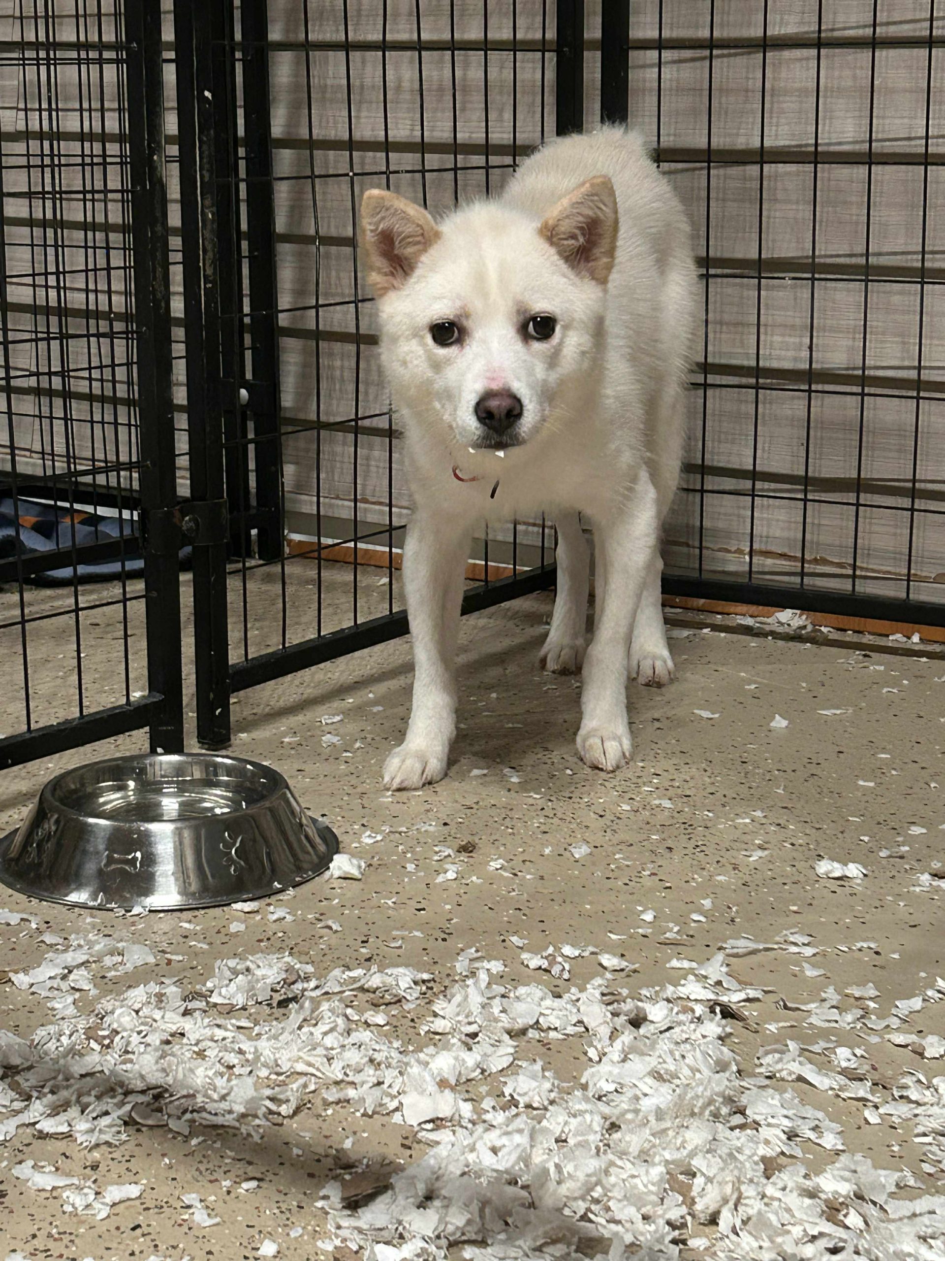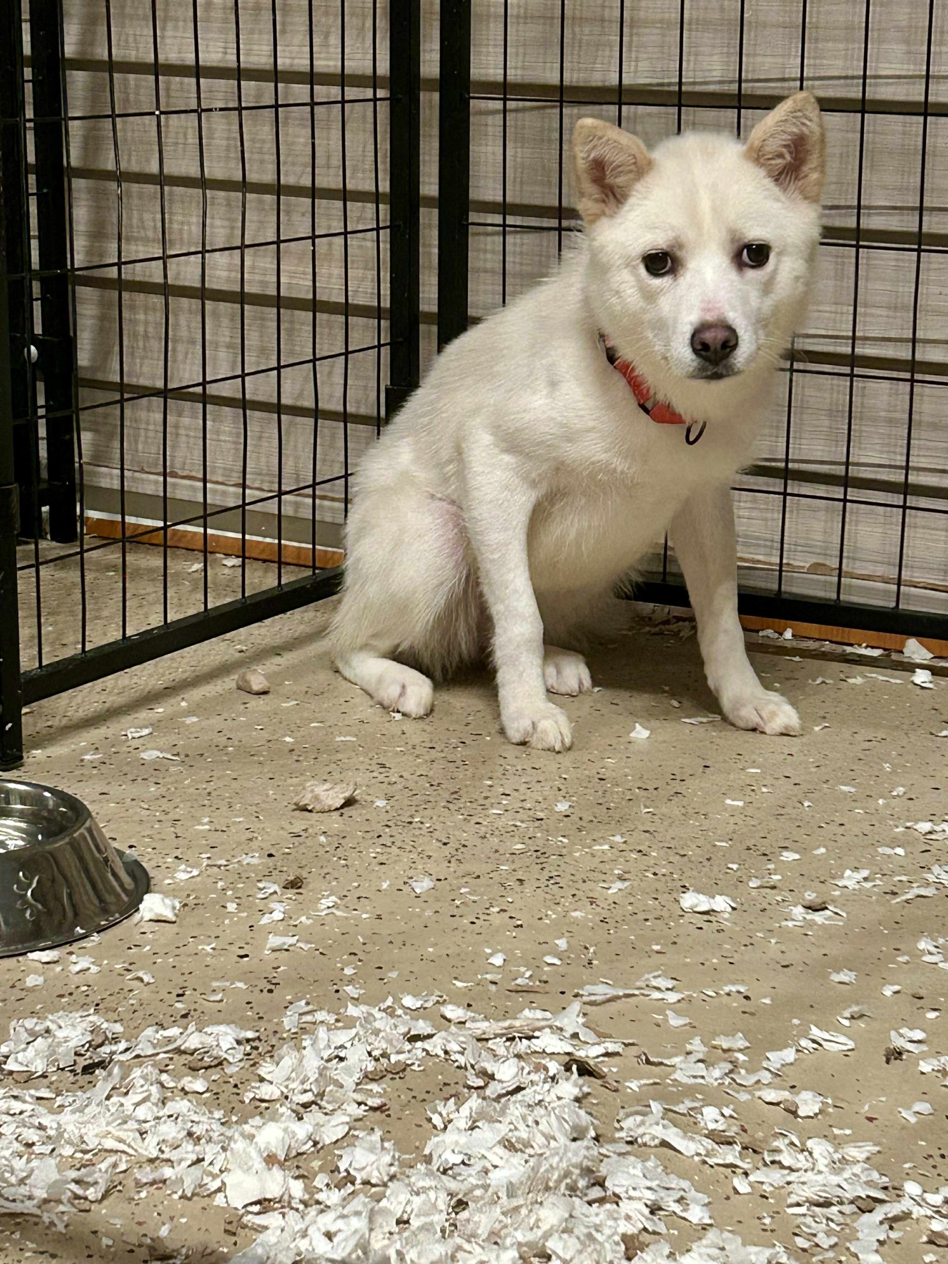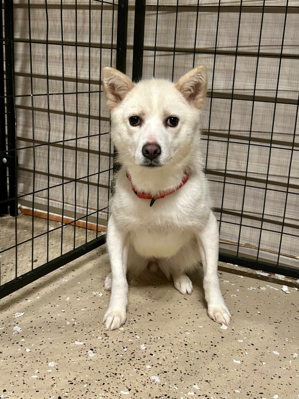 Une jolie femelle de type Jindo croisé âgée de 5 ans et qui pèse 9.4kg.