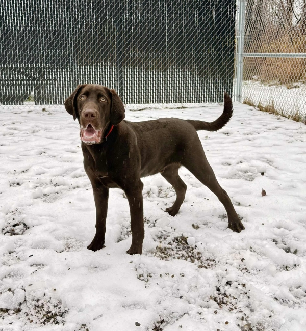 Un adorable labrador chocolat de 6 mois.