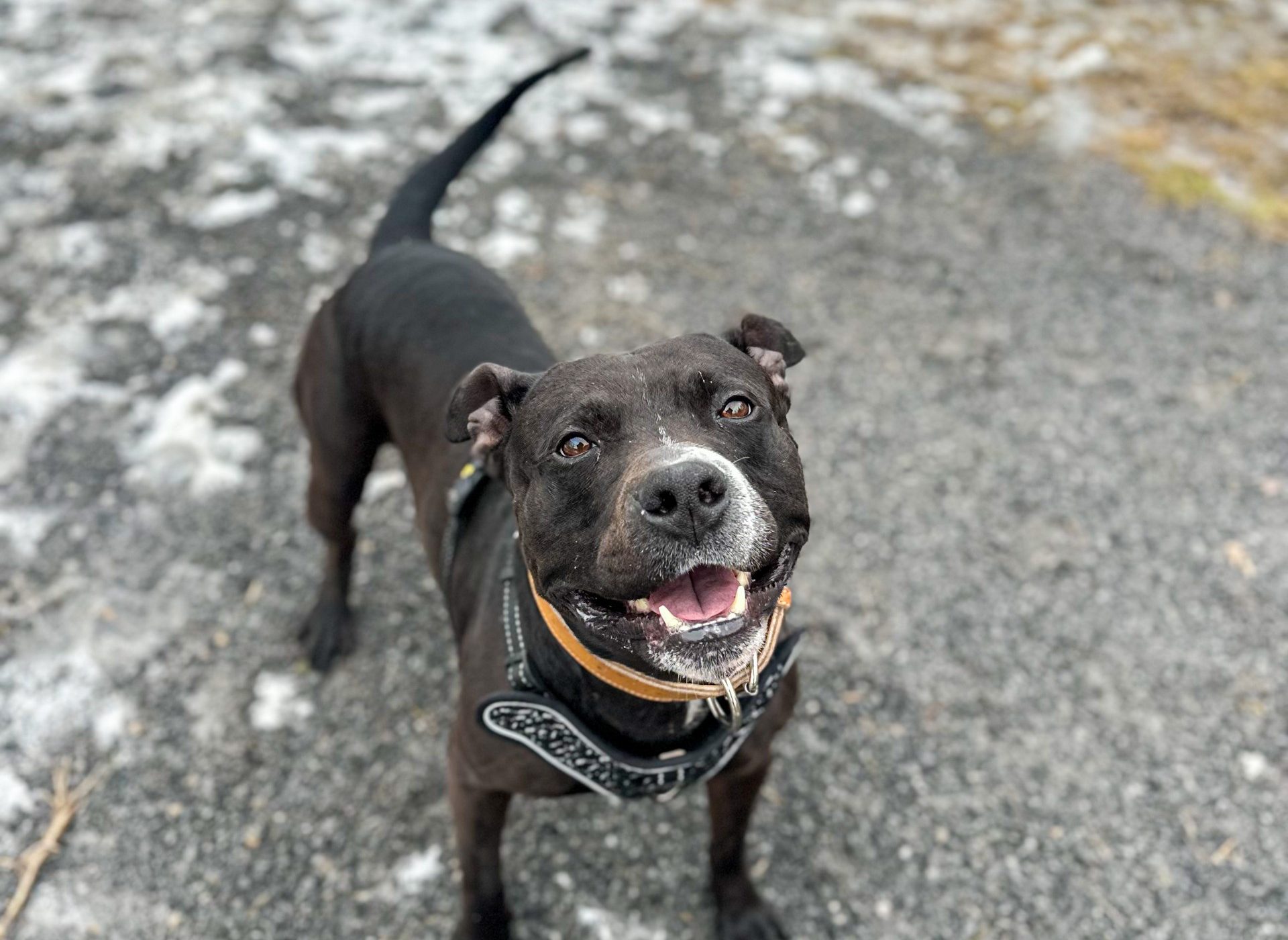 Une belle femelle de 1 an, elle pèse 47 lbs. C’est une chienne craintive à la première approche. Quand elle connait les gens, elle est très affectueuse. Elle fait de la protection de ressources, il faut donc la laisser tranquille. Il ne faut pas d’autre animaux à la maison puisqu’elle est agressif envers eu. De plus, il ne faut pas de jeune enfant dans la famille.