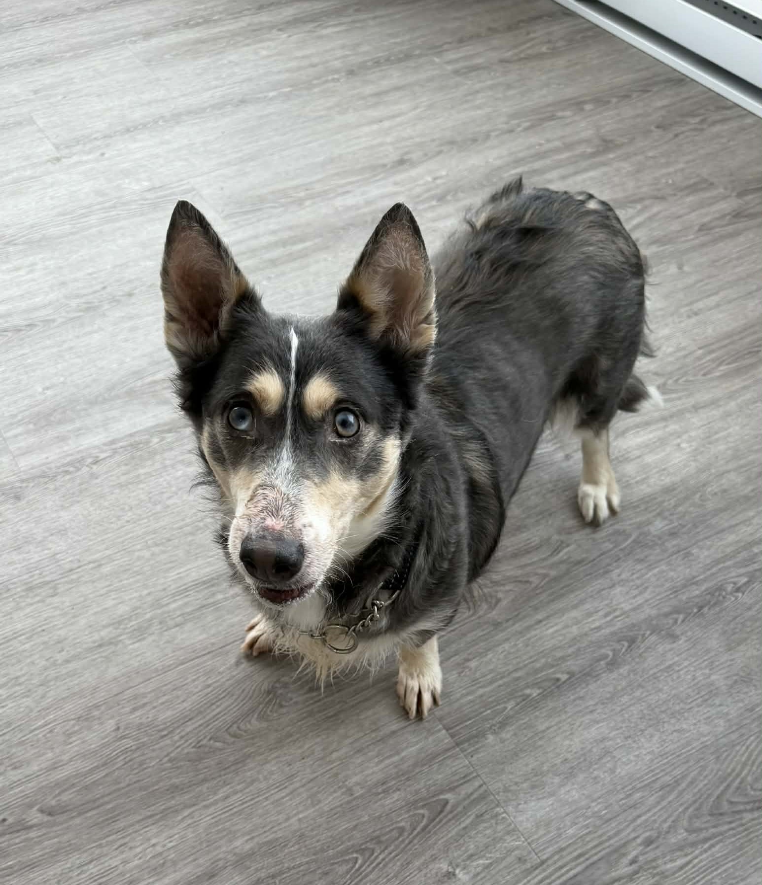 une husky croisée terrier de 4 ans au regard doux et à l’âme sensible.