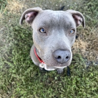 Une jolie femelle de type Pitbull croisée âgé de 1 an et qui pèse 22.2kg.