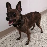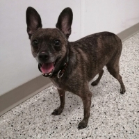 Un séduisant mâle d’expérience de type Chihuahua croisé âgé d’environ 8 ans et pesant 7,4 kg.
