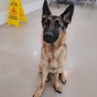Une magnifique jeune femelle de type Berger allemand croisé âgée de 1.5 an et pesant 20 kg.