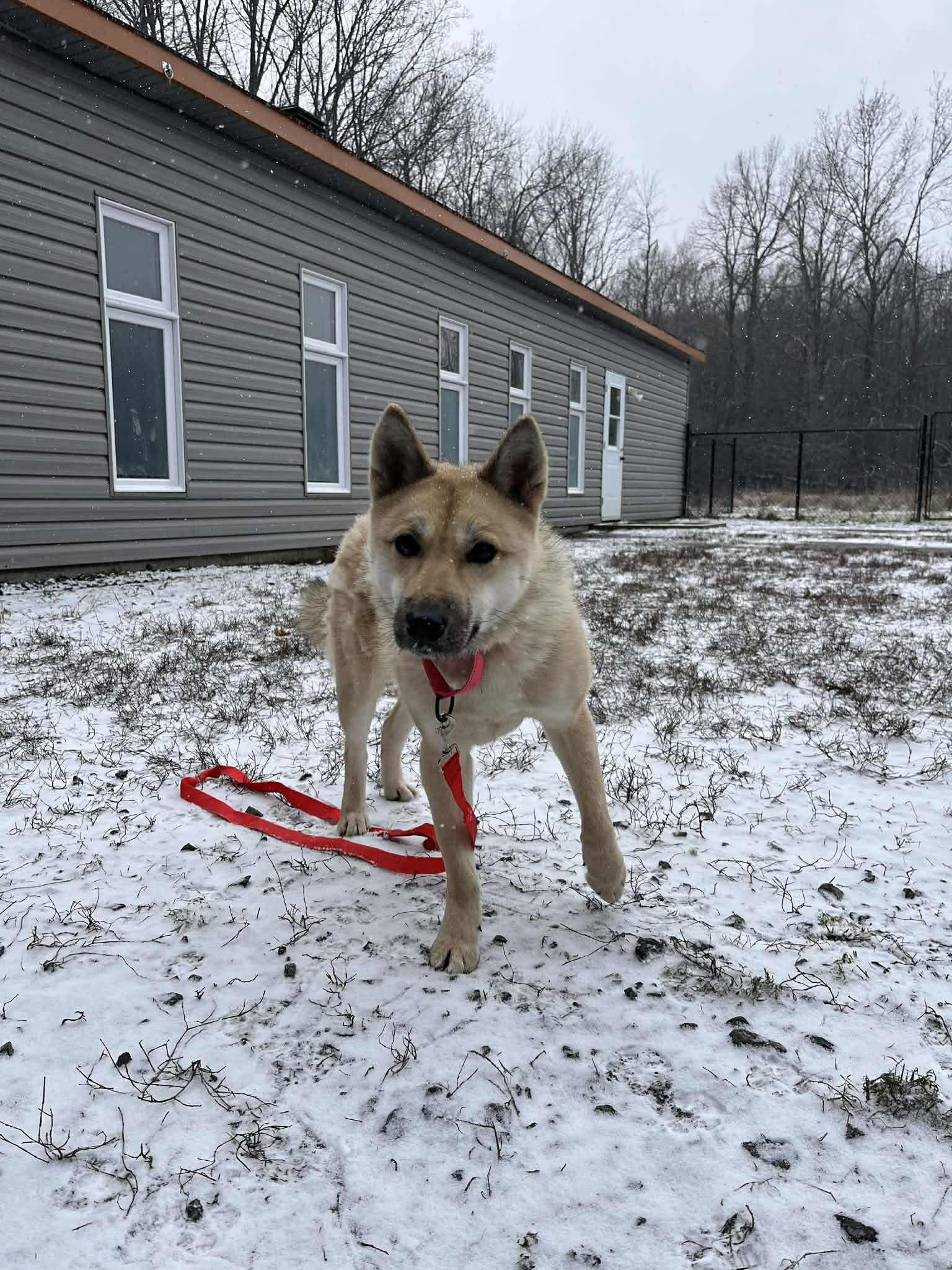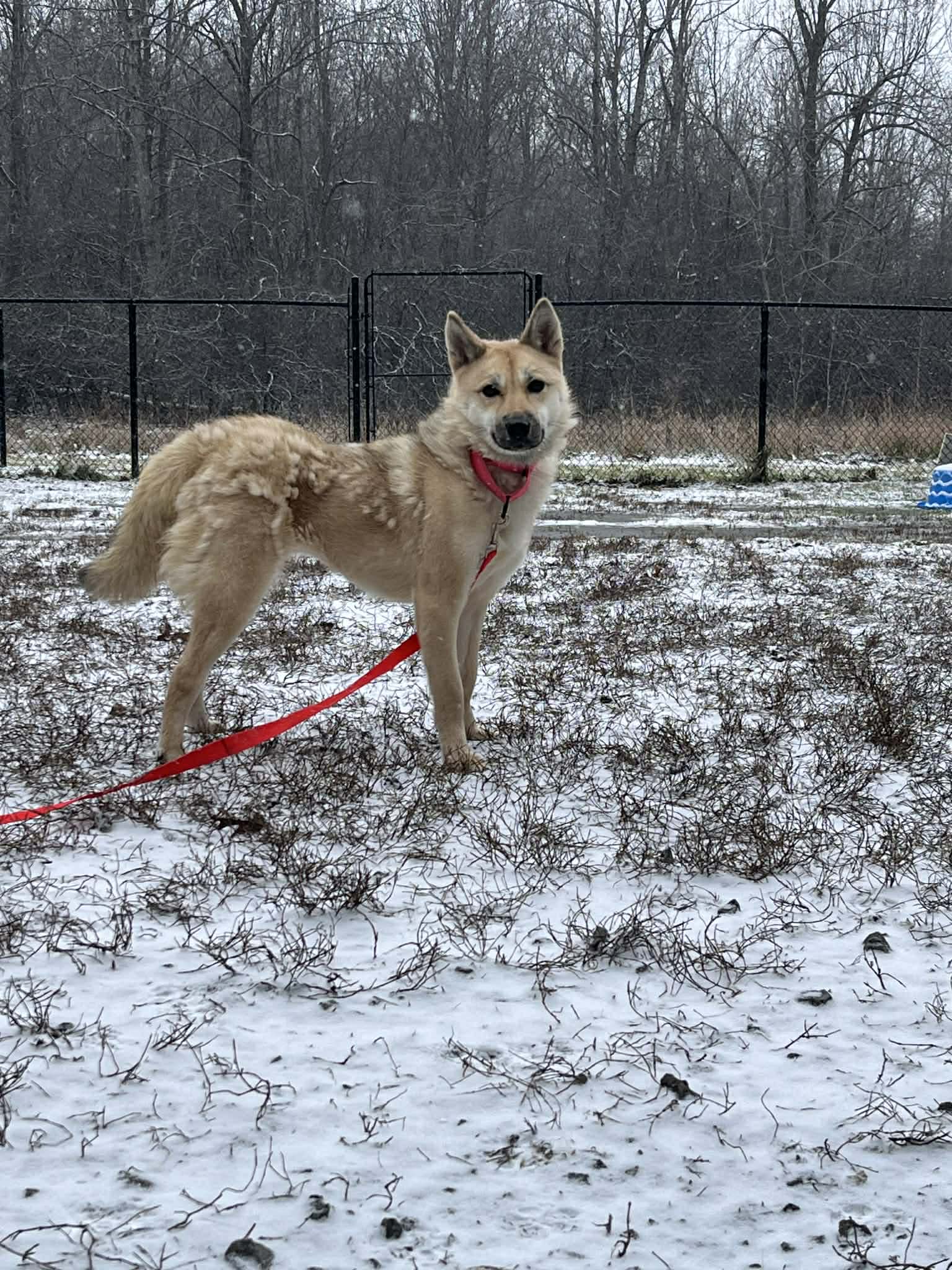 Une belle femelle de type Jindo croisé âgé de 1 an et qui pèse 11,3 kg.