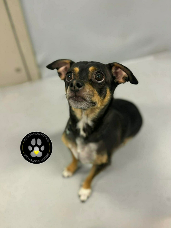 un charmant chihuahua croisé pinscher de 8 ans et 9 mois.