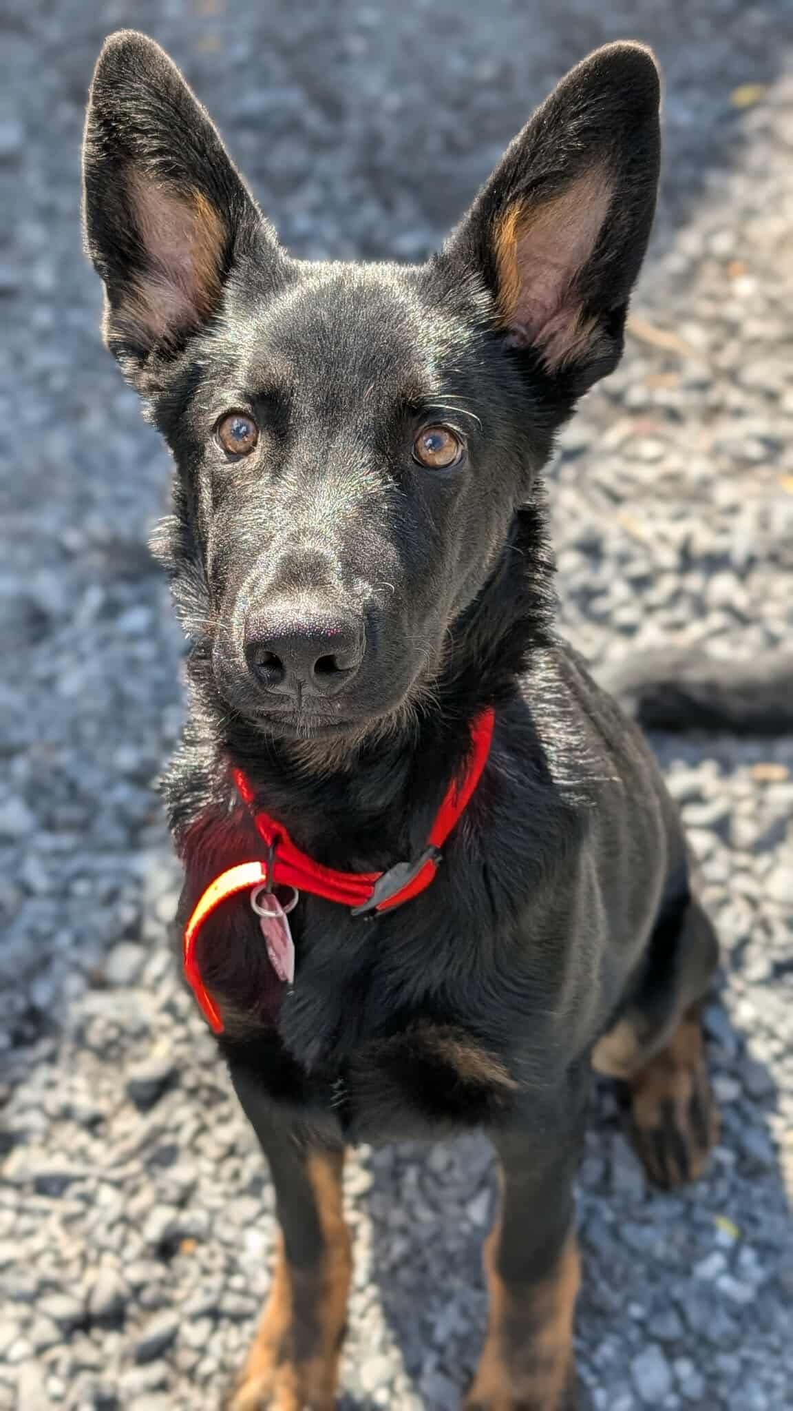Un superbe jeune mâle de type Berger allemand croisé âgé de 7 mois et pesant 36 kg.