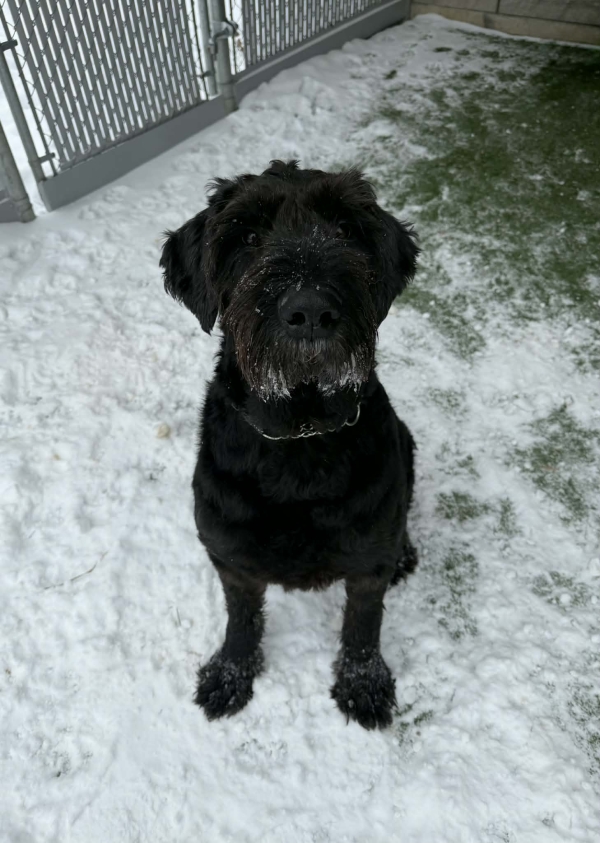 un magnifique Bouvier des Flandres croisé Schnauzer géant de 6 ans, un chien au cœur tendre et au tempérament doux.