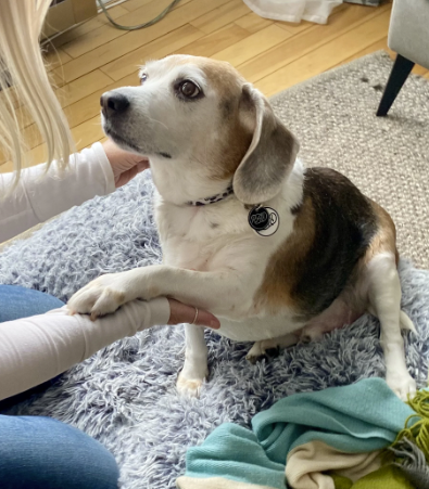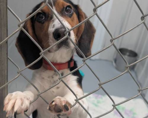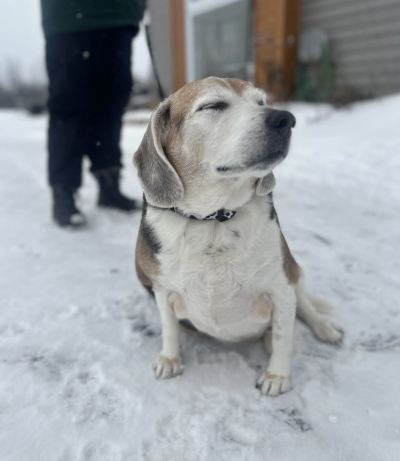 Un magnifique mâle âgé de 8 ans, de taille moyenne (environ 50 lbs, mais devrait être d’environ 30 lbs) et de race beagle.