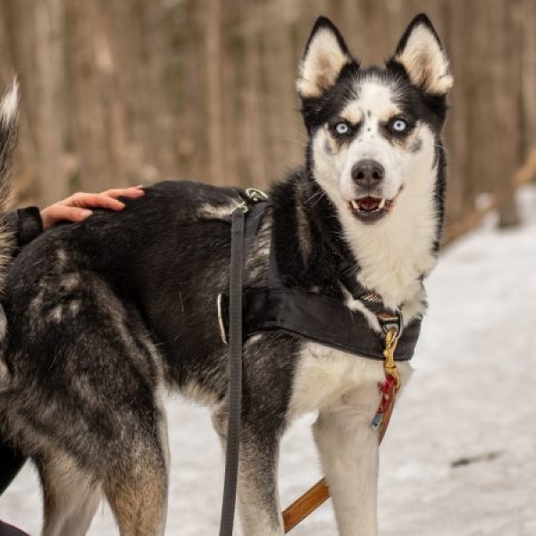 Une superbe femelle de type Husky croisé âgée de 2.5 ans et pesant 25 kg.