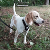 Katie adore aussi faire des promenades pendant lesquelles elle peut sentir tout ce qu’elle rencontre. Elle se comporte bien avec un harnais avec attache frontale. Lorsqu’elle rencontre des chiens inconnus, elle émet son « hurlement de Beagle », probablement parce qu’elle n’est pas tout à fait à l’aise, mais elle se dégêne rapidement et ne se fait pas prier pour participer à une séance de jeu.