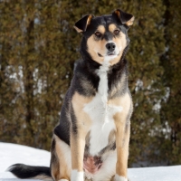 Une charmante jeune femelle de race croisée âgée de 1 an et pesant 21 kg.