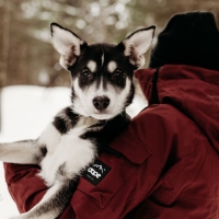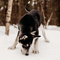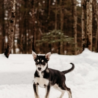 Il aime beaucoup aller jouer dehors et creuser des trous dans la neige. Il aime bien trouver les « failles » de la clôture pour aller explorer plus loin! Il a débuté les balades en laisse, il y a tellement de trucs à sentir!